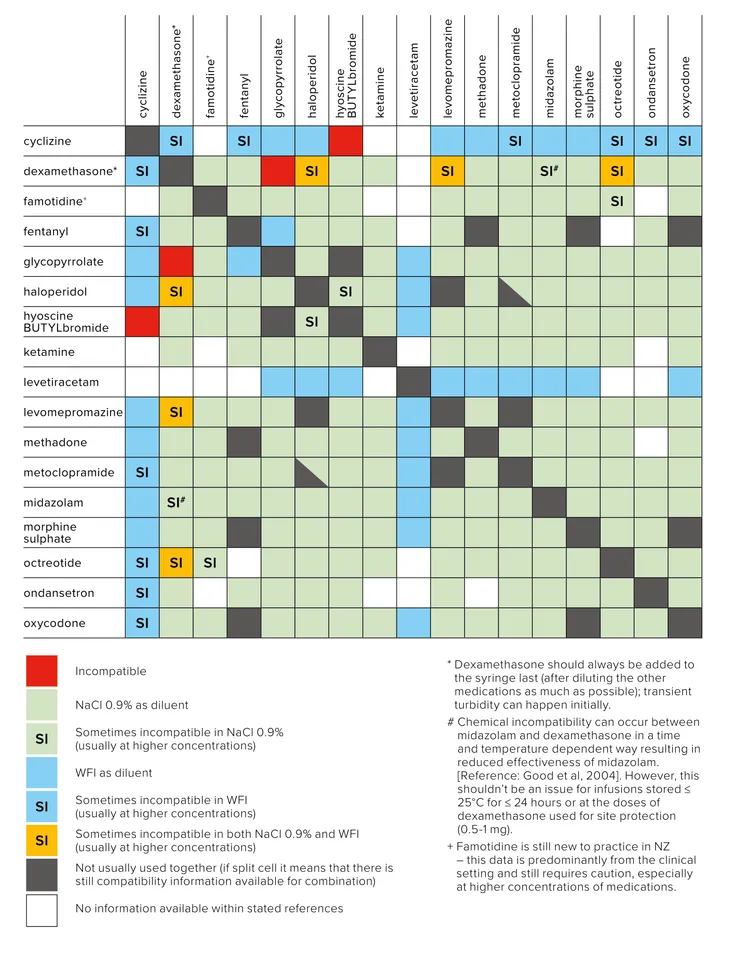 Syringe Driver Compatibility Chart